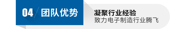 公司核心管理团队均在电子产品代工行业具有十几年的管理经验及技术沉淀。有着丰富的高频类产品(4G基站、雷达天线等)、汽车电子类(ECU、汽车行驶记录仪、 OBU、GPRS)、医疗电子(血糖仪、血氧仪、呼吸机、麻醉机等)、工控类产品(工业计算机、数控机床控制)、网络通讯类(网络交换机、智能手机、汉王电子书等)、 信息安全类(二代身份读卡器加密模块、二代身份证读卡器、银行U盾、POS机)等产品的SMT贴装、测试、组装经验。